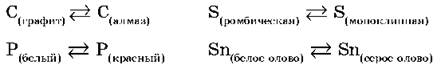 В неорганической химии к таким реакциям можно отнести процессы получения аллотропных модификаций одного химического элемента, например: