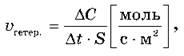 Скорость гетерогенной реакции определяется как изменение количества вещества в единицу времени на единице поверхности.