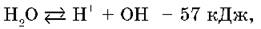 1) незначительная обратимая диссоциация молекул воды (очень слабого амфотерного электролита), которую упрощенно можно записать с помощью уравнения: