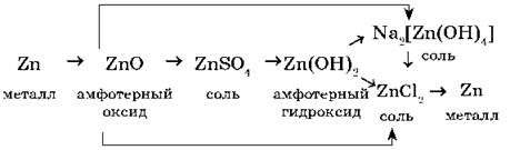 3. Генетический ряд металла, которому соответствуют амфотерные оксид и гидроксид, очень богат связями, т. к. они проявляют в зависимости от условий то кислотные, то основные свойства.