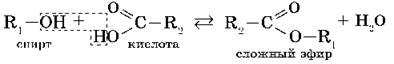4. Взаимодействие спиртов с органическими и неорганическими кислотами с образованием сложных эфиров (реакция этерификации):