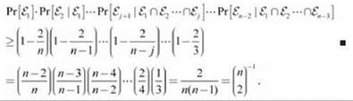 Разрез (A, B) будет возвращен алгоритмом, если ни одно ребро из Ф не было стянуто на любой из итераций 1, 2, ..., n - 2. Если взять за Еj событие “ребро из Ф не было стянуто на итерации j”, то мы показали, что