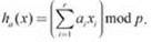 Пусть A — множество всех векторов вида a = (a1, ..., ar), где ai — целое число из диапазона [0, р - 1] для каждого i = 1, ..., r. Для каждого a ∈ A определяется линейная функция ![]()