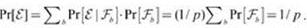 Этот вывод интуитивно понятен: если вероятность равна 1/p независимо от того, как выбираются остальные аi, то она равна 1 /р в целом. Этот факт также можно доказать напрямую при помощи условных вероятностей. Пусть E — событие hа(х) = ha(y), а событие Fb — событие получения всеми координатами аi (для i ≠ j) последовательности значений b. Ниже будет показано, что Рr[E | Fb] = 1/p для всех b. Из этого следует, что ![]()