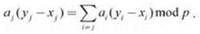 Так как x = у, должен существовать индекс j, при котором хj ≠ уj. Рассмотрим следующий способ выбора случайного вектора a ∈ A. Сначала выбираются все координаты ai, для которых i ≠ j, после чего выбираются координаты аj. Покажем, что независимо от выбора всех остальных координат аi вероятность ha(x) = ha(у), обусловленная завершающим выбором аj, равна 1/р. Из этого следует, что вероятность ha(x) = ha(у) при случайном выборе полного вектора а также должна быть равна 1/р.