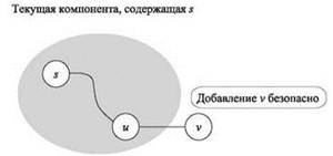 Рис. 3.4. При расширении компоненты связности, содержащей s, мы ищем узлы, которые еще не посещались, такие как v