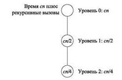 На первый взгляд этот результат выглядит противоестественно. Алгоритм выполняет log n уровней рекурсии, но общее время выполнения остается линейным по n. Суть в том, что геометрическая прогрессия с убывающей экспонентой весьма эффективна: половина работы, выполняемой алгоритмом, выполняется на верхнем уровне рекурсии.