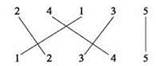 Рис. 5.4. Подсчет инверсий в последовательности 2, 4, 1, 3, 5. Каждая пересекающаяся пара отрезков соответствует паре, находящейся в обратном порядке во входном и упорядоченном списках, — иначе говоря, инверсии