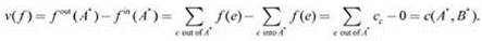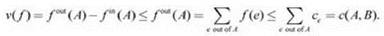 Для разреза (A, B) ребра, входящие в B, в точности совпадают с ребрами, выходящими из A. Аналогичным образом ребра, выходящие из B, в точности совпадают с ребрами, входящими в A. Следовательно, fout(A) = fin(B) и fin(A) = fout(B) просто из сравнения определений этих двух выражений. Это позволяет переформулировать (7.6) следующим образом: