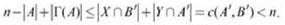 (7.39) Если двудольный граф G = (V, E) с двумя сторонами X и Y имеет идеальное паросочетание, то для всех А ⊆ X должно выполняться условие |Г(А)| ≥ |А|.