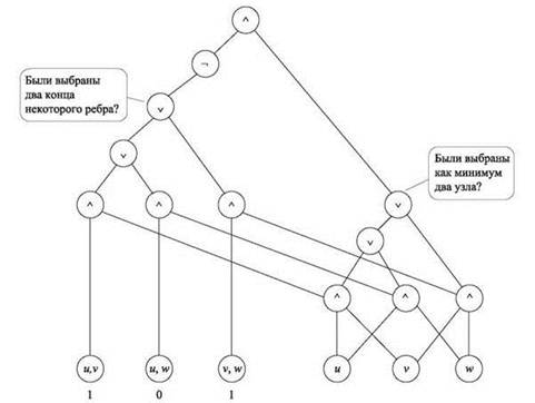 ♦ Все остальные узлы помечаются одним из булевых операторов Λ, V или ¬; узлы с меткой Λ или V имеют два входящих ребра, а узлы с меткой ¬ — одно входящее ребро.