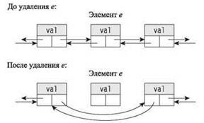 Рис. 2.1. Схематическое представление двусвязного списка с удалением элемента e