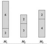 Рис. 11.1. Результат выполнения жадного алгоритма распределения нагрузки на трех машинах с размерами заданий 2, 3, 4, 6, 2, 2