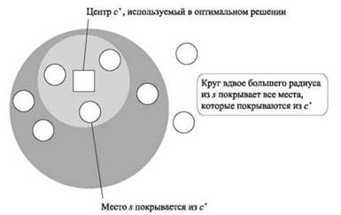 Рис. 11.4. Все места, покрываемые с радиусом r из с*, также покрываются с радиусом 2r из s