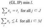 (11.26) Распределение заданий между машинами имеет нагрузку не более L в том, и только в том случае, если вектор х, элементы которого равны хij = tj для задания j, назначенного на машину i, и хij = 0 в противном случае, удовлетворяет ограничениям (GL.IP), где L назначает максимальную нагрузку распределения.