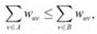 так как в противном случае узел u должен быть перемещен на другую сторону разбиения, и разбиение (A, B) не будет локально оптимальным. Просуммируем эти неравенства для всех u ∈ A; любое ребро, оба конца которого принадлежат A, будет находиться в левой части ровно двух таких неравенств, тогда как любое ребро, один конец которого принадлежит A, а другой принадлежит B, будет находиться в правой части ровно одного из таких неравенств. Следовательно, мы получаем
