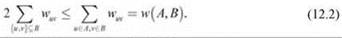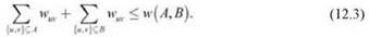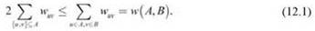 В левой стороне неравенства (12.3) учитываются веса всех ребер, не переходящих из A в B; следовательно, если прибавить w(A, B) к обеим сторонам (12.3), левая сторона станет равна W. Правая сторона превращается в 2w(A, В), поэтому имеем W ≤ 2w(A, В), или w(A, В) ≥ 1/2W. ■