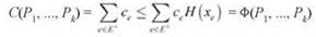 Чтобы убедиться в этом, обозначим C(P1, ..., Pk) полную стоимость для всех агентов при выборе путей P1, ..., Pk. Эта величина просто представляет собой сумму се по всем ребрам, входящим в объединение этих путей, поскольку стоимость каждого такого ребра полностью покрывается агентами, в пути которых оно входит.