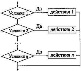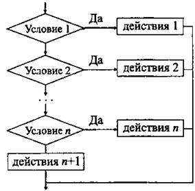 выбор при условие 1: действия 1 при условие 2: действия 2 ... при условие n : действия . все |