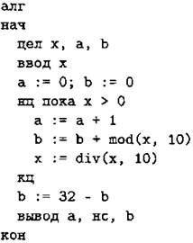 В качестве ответа необходимо привести фрагмент программы (или описание алгоритма на естественном языке), который должен находиться на месте многоточия. Вы можете записать решение также на другом языке программирования (укажите название и используемую версию языка программирования, например, Borland Pascal 7.0) или в виде блок-схемы. В этом случае вы должны использовать переменные, аналогичные переменным, используемым в алгоритме, записанном на естественном языке, с учётом синтаксиса и особенностей используемого вами языка программирования.