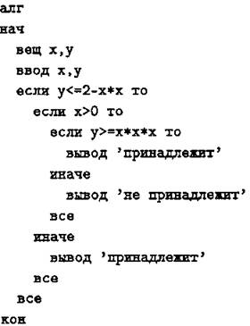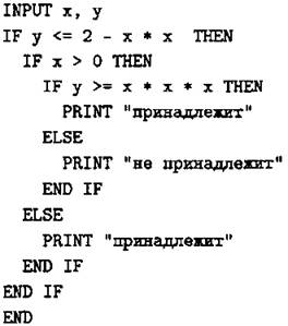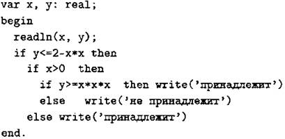 С1. Требовалось написать программу, при выполнении которой с клавиатуры считываются координаты точки на плоскости (х, у — действительные числа) и проверяется принадлежность этой точки заштрихованной области, включая её границы (см. рис. 17).