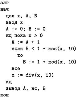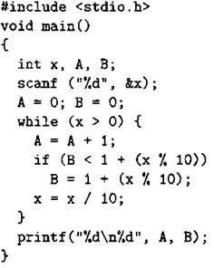 В7. Ниже на 4-х языках записан алгоритм. Получив на вход число х, этот алгоритм печатает два числа А и В. Укажите наибольшее из таких чисел х, при вводе которых алгоритм печатает сначала 3, а потом 4.
