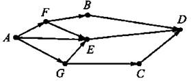 В9. На рисунке 36 изображена схема дорог, связывающих города А, В, С, D, Е, F и G. По каждой дороге можно двигаться только в одном направлении, указанном стрелкой. Сколько существует различных путей из города А в город D?