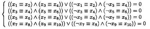 В ответе не нужно перечислять все различные наборы значений х1, х2,... х9, х10, при которых выполнена данная система равенств. В качестве ответа нужно указать количество таких наборов.