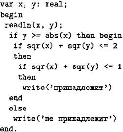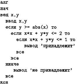 С1. Требовалось написать программу, которая вводит с клавиатуры координаты точки на плоскости (х, у — действительные числа) и определяет принадлежность точки заштрихованной на рисунке 37 области, включая её границы. Программист торопился и написал программу неправильно.