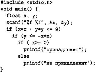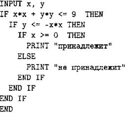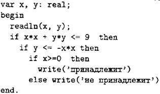 С1. Требовалось написать программу, при выполнении которой с клавиатуры считываются координаты точки на плоскости (х, у — действительные числа) и проверяется принадлежность этой точки заштрихованной области, включая её границы (см. рис. 69).