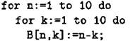 В цикле от 1 до 20 организуем внутренний цикл от 1 до 20, в котором вводим элементы массива А.