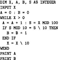 В7. Ниже на 4-х языках записан алгоритм. Получив на вход число х, этот алгоритм печатает два числа А и В. Укажите наименьшее из таких чисел х, при вводе которых алгоритм печатает сначала 5, а потом 3.