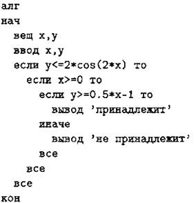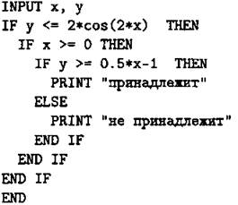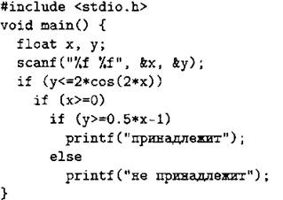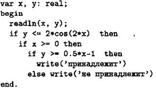 Cl. Требовалось написать программу, при выполнении которой с клавиатуры считываются координаты точки на плоскости (x, у — действительные числа) и проверяется принадлежность этой точки заштрихованной области, включая её границы (см. рис. 73).