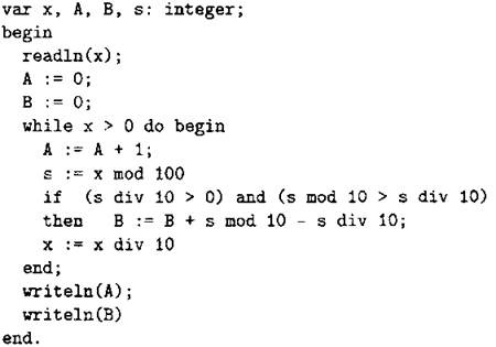 В качестве ответа необходимо привести фрагмент программы (или описание алгоритма на естественном языке), который должен находиться на месте многоточия. Вы можете записать решение также на другом языке программирования (укажите название и используемую версию языка программирования, например, Borland Pascal 7.0) или в виде блок-схемы. В этом случае вы должны использовать переменные, аналогичные переменным, используемым в алгоритме, записанном на естественном языке, с учётом синтаксиса и особенностей используемого вами языка программирования.