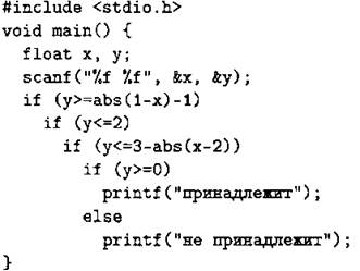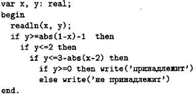 С1. Требовалось написать программу, при выполнении которой с клавиатуры считываются координаты точки на плоскости (я, у — действительные числа) и проверяется принадлежность этой точки заштрихованной области, включая её границы (см. рис. 77).