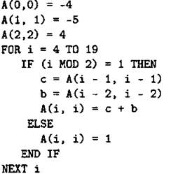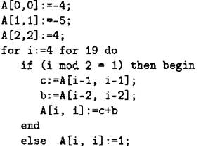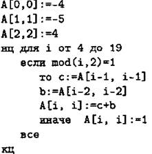 Обозначим элемент, стоящий в строке i и столбце j через А[i, j]. Укажите, какое число будет находиться в А[17,17] после выполнения этого фрагмента программы.