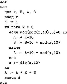 В7. Ниже на 4-х языках записан алгоритм. Получив на вход число х, этот алгоритм печатает число А. Укажите такое число х, при вводе которого алгоритм печатает 14263.