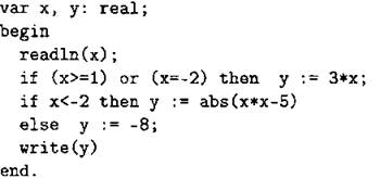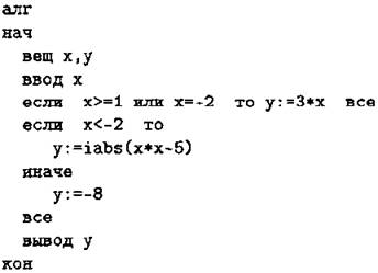 С1. Требовалось написать программу, при выполнении которой с клавиатуры считывается действительное число х и вычисляется значение функции у(х), заданной условиями: