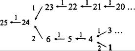 В2. Изобразим с помощью графа, при помощи каких команд может быть получено число 25 и числа, предшествующие ему (см. рис. 94). При этом учитываем, что количество команд не должно превышать 5-ти.