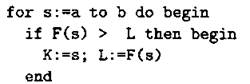осуществляет поиск наибольшего значения функции F(s) в целочисленных точках промежутка от —16 до 16 и выводит на экран точку, в которой достигается это значение.
