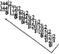 Пример 1. Переведите число 344 из десятичной системы в двоичную.