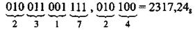 3. Для перевода числа из восьмеричной системы в двоичную достаточно заменить каждую цифру этого числа соответствующим трёхразрядным двоичным числом (триадой), при этом отбрасывают незначащие нули в старших и младших (после запятой) разрядах.