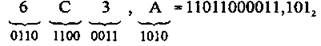 Пример 4. Переведите число 6СЗ,А из шестнадцатеричной системы в двоичную.