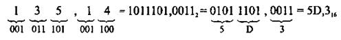 Пример 5. Переведите число 135,14 из восьмеричной системы счисления в шестнадцатеричную.