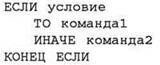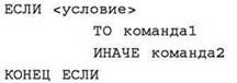 выполняется команда1 (если условие истинно) или команда2 (если условие ложно).