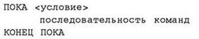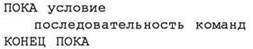 В конструкциях ПОКА и ЕСЛИ условие может содержать команды проверки, а также слова И, ИЛИ, НЕ.