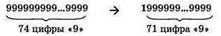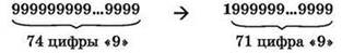 Какая строка получится из строки, состоящей из 74 идущих подряд цифр “9”?