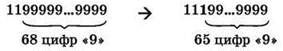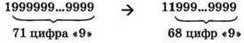 2. На втором проходе цикла условие ПОКА истинно (после полученной единицы имеется три девятки подряд). Условие ЕСЛИ по-прежнему истинно. Поэтому вновь выполняется ветвь программы ТО и производится замена очередных трёх девяток на одну единицу: