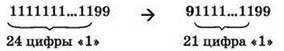 Какой станет в результате строка? Очевидно, в её начале будет столько единиц, сколько в исходной строке имелось целых триад, и это количество можно определить путём целочисленного деления: 74 DIV 3 = 24. А после них останутся “невостребованными” девятки, количество которых меньше трёх. Сколько их, модно вычислить как остаток от деления исходного количества девяток на три: 74 MOD 3 = 2. Следовательно, строка будет такой: