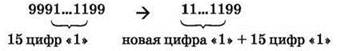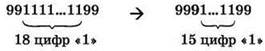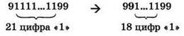 • в начале строки может образоваться менее трёх девяток, а в середине — остаться менее трёх единиц (как это и произошло в нашем случае);